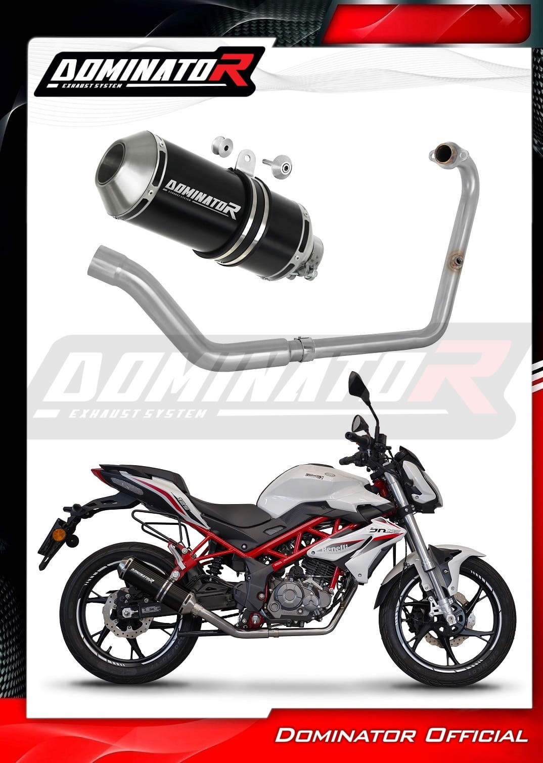 Das Dominator Auspuffsystem wird den Charakter Ihres Motorrads verändern und ihm einen einzigartigen Sound verleihen. Das Auspuffsystem steigert die Leistung und das Drehmoment des Motors, während es gleichzeitig das Gewicht des Schalldämpfers und des Sammlers reduziert.