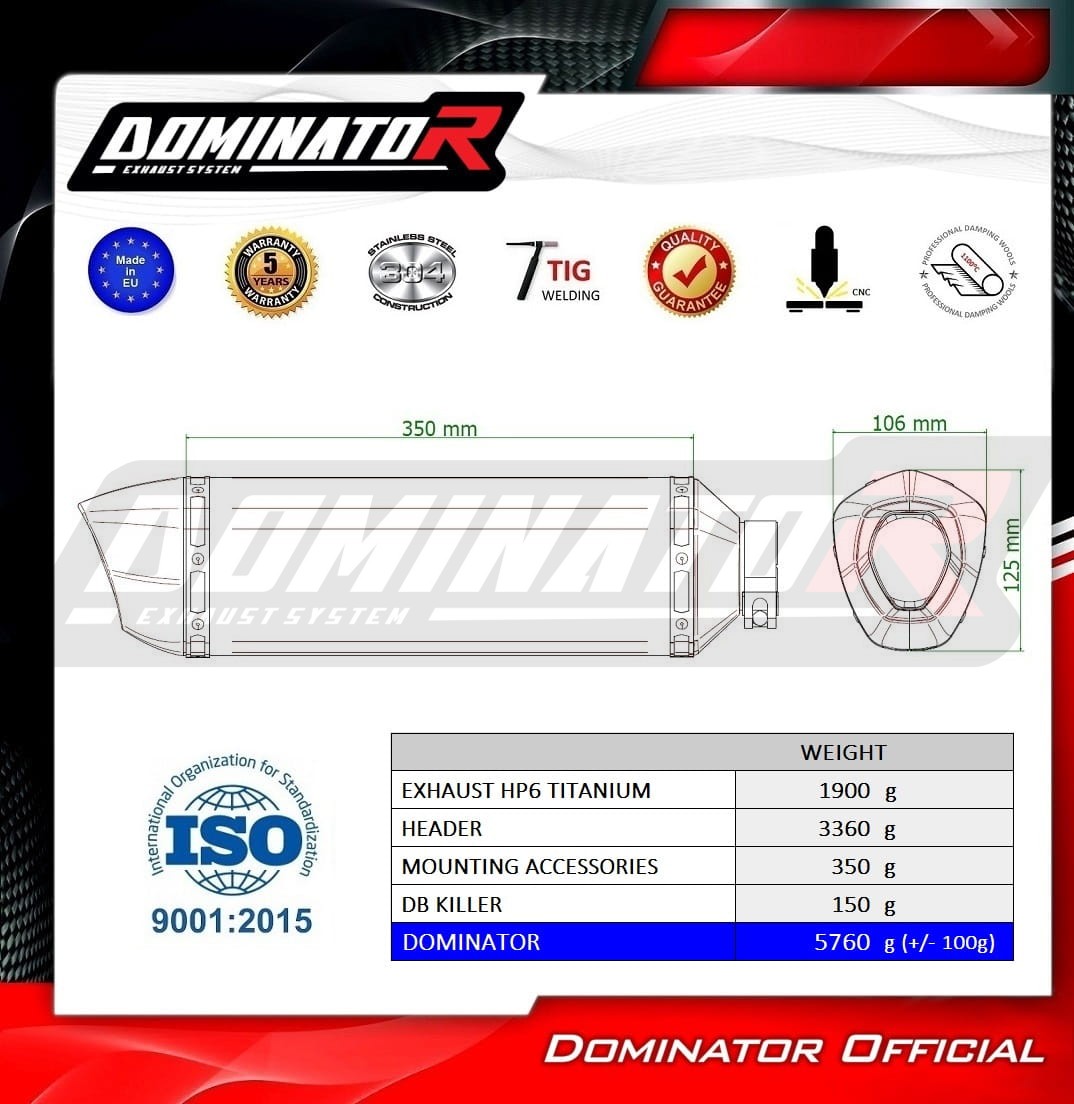 Auspuffanlage DOMINATOR mit HP6 Titan Schalldämpfer passt zu: