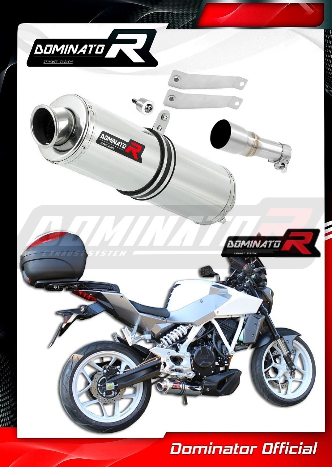 The Dominator Exhaust will change the nature of your motorcycle giving it a unique sound. The Exhaust system will increase the power and torque of the engine, while reducing the weight of the muffler.